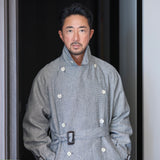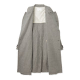 リネンコートの中でもその張り感も特徴で、フォルムが美しく形作られます。 半面リネン特有の着用皴がエレガントなムードを加味してくれる、大人のためのコートとなりました。