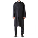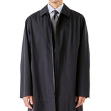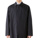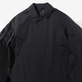 ステンカラーコートは、オーセンティックなステンカラーコートをベースに、ややワイドな身幅で仕立てたシンプルでムダのないミニマルなデザイン。袖口や前立ては圧着仕様でステッチをなくし、内側はフルシーム仕様で雨の浸入を防ぐ完全防水仕様です。はおるだけで、いまっぽいシルエットになるので、ジャケットスタイルの上からもすんなりなじみます。