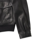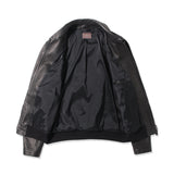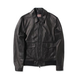 まずはグレインレザージャケットですが、ベースはA-2型のフライトジャケット。シルエットはごくオーソドックスで、余計な主張を排した潔さがいいですよね。けれども、袖を通してみると、その革の素晴らしさに誰もが驚くはずです。生後一年のイタリア産ラムレザーを、イタリア南部の名門タンナーで丁寧になめしたシボ革は、しっとりと手に吸いつくような質感。世界のトップメゾンと同等クラスのクオリティといって差し支えありません。これほど上質なグレインレザーを使ったジャケットは、そうそう出合えないでしょうね。僕自身、袖を通した瞬間に昇天してしまいした(笑)。
