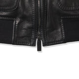 フロントはダブルジッパー仕様、引手の上部はホーン製、下部はジャケットと同じレザー製、機能性とシックな美しさを融合させています。