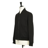 そして今回、このジョガーパンツに合わせるためにボンバージャケットも同素材で製作。トラウザーズが本命のgiabsarchivio には異例ともいえるアウターですが、MA-1を想起させるデザインをベースにして、袖のユーティリティポケット(シガレットポケット)はあえて省き、ミニマルなブルゾンに仕上げました。