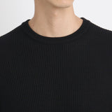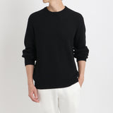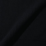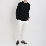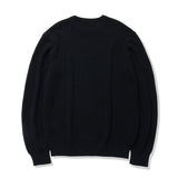 編み糸にスビンプラチナム(ファーストピック)を使用したミドルゲージのワッフルクルーネックニット。スビンプラチナムならではの編み目の綺麗さや肌触りでソフトでラグジュアリーな印象に。ミドルゲージで重厚な見た目ながらもソフトな仕上がりになっています。1枚での着用はもちろんコートやブルゾンとのコーディネートでも映える雰囲気のある一着です。