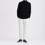 昨シーズン販売開始したスビンプラチナムニットの新ライン、ミドルゲージコレクション。繊細でなめらかなタッチが人気のスビンプラチナムをミドルゲージ編み機でこれまでにない表面感に作りあげました。アウターとしてもコートなどのインナーとしても着用できる汎用性の高いタートルネックニットです。