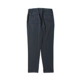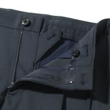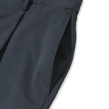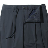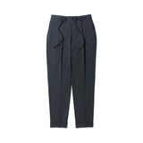 トラウザーズも、ただのイージーパンツではありません。ジャケットと同様、クラシックとリラックスの要素を融合。ウエストはゴムとドローコードで楽にはけるのに、あえてベルトループを装備してドレッシーな印象に。股上は浅めにして、膝下はテーパードを強めにしています。永久加工を施したセンタークリースは、湿気の多い天候のときや汗をかいた時もとれません。