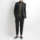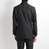 ジャケットテーラー吉田泰輔氏監修によるTECHWOOLツイルのテーラードジャケット。ラペルを広く取り、Vゾーンを狭くすることでクラシックなエッセンスがちりばめられたジャケットはボタンを留めた時の美しいシルエットだけでなく、前身頃を落として僅かに外側に逃がすことによってボタンを外して着用した時にもシルエットがシャープに見えるように仕立てています。