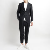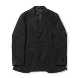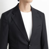 ジャケットテーラー吉田泰輔氏監修によるTECHWOOLツイルのテーラードジャケット。ラペルを広く取り、Vゾーンを狭くすることでクラシックなエッセンスがちりばめられたジャケットはボタンを留めた時の美しいシルエットだけでなく、前身頃を落として僅かに外側に逃がすことによってボタンを外して着用した時にもシルエットがシャープに見えるように仕立てています。