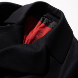 オリジナルの色はコスモネイビーですが、モノトーンのスタイルが多い自分にとってはブラックのほうが使い勝手がいいような気がして、色の変更をお願いしています。また、色もそうなんですが、よりモダンに着られるほうがいいと思い、ショルダーラインを少し落として丸みを出したのもポイント。オーダーサイズとはいかないまでも、ちょっと余裕のあるシルエットにしています。
