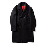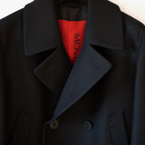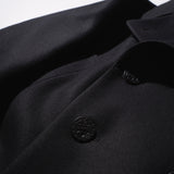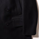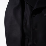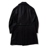 ロング丈とはいえ膝上なので、着こなしはそれほど難しく考える必要はないと思います。メルトン調のかっちりとした見た目なのに、とにかく軽くて、着心地がいい。しかも動きやすいのが最大の魅力。ピーコートという性格上、コーディネイトはカジュアルが基本となりますが、僕の場合はオールブラックで、クルーネックセーターにテーパードパンツ、ブーツみたいなシンプルな組み合わせで着たいと思っています。