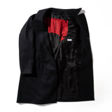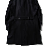 背面にはバックベルトを配し美しいバックシャンを表現。襟周りには、チンストラップもプラスし、防寒性はもちろんのこと、衿を⽴てた際も ダンディズムを感じる佇まいとしています。ビジネスシーンはもちろんのこと、オフの⽇には、ざっくりとした タートルネックにバサッと⽻織るだけで様になる1着です。