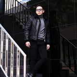 クラック加工の入ったシープレザーとシアリングのライニングを備えた一枚革仕様。