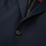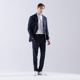 ストレッチ性のある快適なジャージ素材でありながら、高級感のあるハンド風ステッチや立体的なテーラード仕立てが特徴です。快適性と洗練さを纏ったスマートな佇まいはそのままに、ビジネスマンの必需品である名刺やスマートフォン・財布を収納できるマルチポケット機能を搭載したトラベル仕様になっています。