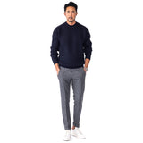 リブパンツとはいっても、カジュアルなコーディネイトならジャケットにも合わせられる上質感があって、きれいな細身のテーパードシルエットというのも使い勝手のいいポイント。テーラード仕立てで、センターにはつまみ縫いの永久クリースを施しているのもこだわった部分です。永久クリースは、本当に出張のときはありがたくて、あるとやっぱりきちんと見えるんですよね。
