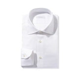 ロイヤルオックスフォードは、生地表面に現れる菱形の織りと、織り柄から浮き上がる上品な光沢感が特徴。着用時は汗をかいても素肌に張り付きにくく、汗染みが目立ちにくいことから、ドレッシーな印象を崩さず快適にお召しいただける万能なシャツとして人気が高い生地です。