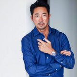 ほどよく鍛えた上半身、ボタンを開けた胸元から見える適度な日焼け、腕まくりから覗く腕の筋、そして男っぽいゴツめの腕時計……。