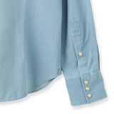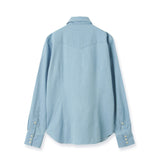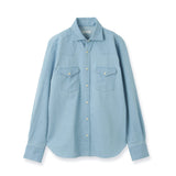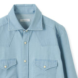 カーブしたヨークや両胸のフラップポケット、ドットボタンなどが特徴的なウェスタンシャツを、ARCODIOで大人気のシャンブレー生地で作製しました。