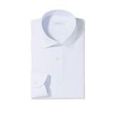 襟型は干場義雅監修 GINO(ジーノ)を搭載。襟先を短めに仕上げたショートポイントのセミワイドカラーです。やや小ぶりの襟が新鮮でリラックスした雰囲気。芯地も他の襟より少し柔らかめのものを使用しています。タイドアップしてもカッチリし過ぎず、スッキリとお召しいただけます。