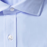 襟型は、僕が以前プロデュースさせてもらった「GINO」という、セミワイドショートポイント。素材が新しくなっただけで、ボディのシルエットはこれまでのARCODIOのシャツと変わりません。色は、定番の白のほか、サックスブルーとネイビーの2色を別注させてもらいました。白とサックスブルーは、普段のスーツやジャケットスタイルに、ネイビーはジーンズやコットンパンツなどに合わせて着たいと思っています。