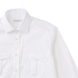 パイロットシャツは、昔から好きでよく着ているんです。なかでも強烈に印象の残っているのがメンズモード黎明期のプラダ。1990年代、小襟で両胸にフラップポケットが付いた、ちょっとレトロイメージのベージュやブルーのシャツがランウェイに登場したときには本当シビれました。当時の影響が強かったこともあり、このシャツはなんとなくああいったイメージで、しかもビジネスシーンで着られるものがあればいいなあと考えたのが出発点です。コットンの風合いを残しながら、ストレッチ性があって、シワになりにくく、素肌が透けにくいなどなど、僕の煩悩を最大限に詰め込んでみました。実はパイロットシャツは以前、ANAの企画でビームスとコラボでつくったり、エストネーションで鹿の子素材でつくったりして大ヒットを飛ばした経験があり、これは絶対に欲しい人がたくさんいるなと。