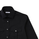 パイロットシャツは、昔から好きでよく着ているんです。なかでも強烈に印象の残っているのがメンズモード黎明期のプラダ。1990年代、小襟で両胸にフラップポケットが付いた、ちょっとレトロイメージのベージュやブルーのシャツがランウェイに登場したときには本当シビれました。当時の影響が強かったこともあり、このシャツはなんとなくああいったイメージで、しかもビジネスシーンで着られるものがあればいいなあと考えたのが出発点です。コットンの風合いを残しながら、ストレッチ性があって、シワになりにくく、素肌が透けにくいなどなど、僕の煩悩を最大限に詰め込んでみました。実はパイロットシャツは以前、ANAの企画でビームスとコラボでつくったり、エストネーションで鹿の子素材でつくったりして大ヒットを飛ばした経験があり、これは絶対に欲しい人がたくさんいるなと。