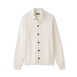 今回、注目してほしいのが「イタリア製 5Gメリノウールカーディガン」。ドライバーズニットの要素をもちながら、クラシカルなボタン留めを採用した一着です。クリーンで上品な印象の中に男らしい骨太さが潜んでいて、デニムに合わせても、ウールパンツやジャケットスタイルにはおっても絵になります。ネックの高さも絶妙で、高すぎず低すぎず、自然体のまま収まりのいいバランスを保ってくれるんですよ。こういうさりげないデザインこそ、大人のワードローブに必要不可欠な要素でしょうね。