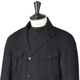 フィールドジャケットとは、ミリタリーウエアの一種で主に軍用の作業服としてデザインされています。シンプルで機能的なデザインが特徴のフィールドジャケットをベースに、普段使いしやすいよう都会的で洗練されたジャケットに仕上げました。