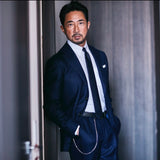 僕の顔でもあるグレースーツに、この数年合わせているのは、細身の黒のネクタイ。もちろん無地で、素材はウール。これが、クラシックなスーツに合わせると、映画『007』のジェームズ・ボンドのようにシャープな印象に見せてくれるんですよね。現代的に見えるし。ネクタイ幅が細いと、上着を脱いだ時に胸幅が広く見えるから、目の錯覚で顔が小さく見えるのもポイント。モードブランドにも黒無地の細いネクタイはあるんですけど、素材のクオリティがイマイチで、安っぽいものばかり。ということで、ロロ・ピアーナのスーパー150’sのウール素材で作ってもらったのがARCODIO(アルコディオ)のネクタイ。