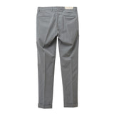 まず定番中の定番が、1プリーツのコットンパンツ「BG07」。ストレッチ性のあるツイル織りのコットン生地は、はいた瞬間から心地よく、それでいて見た目は驚くほどエレガントです。スリムなシルエットにワンプリーツを組み合わせることで、カジュアルにもジャケットにも自然になじみます。製品染めのコットンならではの味わいがはき込むほどに増していくのも魅力で、どこか昔のラルフ・ローレンのチノーズを彷彿とさせる雰囲気がありながら、あくまでイタリア仕立ての美しさがあります。個人的にも毎シーズン買い足しているモデルで、気づけば全色揃ってしまいました。なかでも出番が多いのはホワイト、ネイビー、グレー。この3本があれば、一年中活躍してくれます。