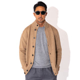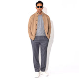 今回、注目してほしいのが「イタリア製 5Gドライバーズニット」。ドライバーズニットの要素をもちながら、クラシカルなボタン留めを採用した一着です。クリーンで上品な印象の中に男らしい骨太さが潜んでいて、デニムに合わせても、ウールパンツやジャケットスタイルにはおっても絵になります。ネックの高さも絶妙で、高すぎず低すぎず、自然体のまま収まりのいいバランスを保ってくれるんですよ。こういうさりげないデザインこそ、大人のワードローブに必要不可欠な要素でしょうね。