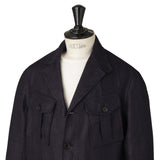 フロントに4つの大型フラップポケットを配置し、コーディネートのアクセントにもなるデザインが魅力。麻100%のドライなタッチと着心地を楽しむことが出来るジャケットです。
