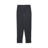 ウエストのゴム量を増やし、クロスクローゼットで展開しているものよりウエストの伸びが大きくなるように改良しました。ウエストを絞るコードは外側だけでなく内側にも収納でき、ウエストにはベルトループが配置されており、ベルトの有無によってシーンに応じて変化させることができます。裾はアンフィニッシュのため、ダブル仕立てやシングル仕立てなど、自分のスタイルに合った仕上げにすることができます。後ポケットも3mm幅の細玉縁ポケットで作り上げており、ドレッシーな雰囲気に仕上がっています。センタークリースも特別な加工により、雨などでも取れにくくなっています。左ポケットには、+CLOTHETであることを示す+マークが入っています
