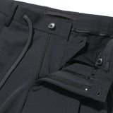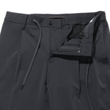 トラウザーズも、ただのイージーパンツではありません。ジャケットと同様、クラシックとリラックスの要素を融合。ウエストはゴムとドローコードで楽にはけるのに、あえてベルトループを装備してドレッシーな印象に。股上は浅めにして、膝下はテーパードを強めにしています。永久加工を施したセンタークリースは、湿気の多い天候のときや汗をかいた時もとれません。