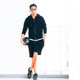 そこで、出社するときにスーツを着るように、家で着られるスーツがあればいいのに、と思ったのがこの企画のきっかけでした。スリーピースのようにフーディー、Tシャツ、ショーツをセットアップで着られるのはかなり重宝するはず。僕は普段のコーディネイトでも、極力色合わせに悩みたくないと思っているので、これは会心の出来栄えです(笑)。