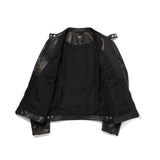 最大の特徴である素材には、従来の革より若干厚みのある0.9mmワックス加工のラムスキンを使用。これにより軽くて柔らかいだけではなく、ライダーズ特有のタフな印象も出しています。