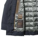 Acquaシリーズ(耐水レベル2)から登場するコートは、表面にキルティングを施さないシンプルなデザイン。フランネルのような外観と柔らかな手触りを持つPUM素材を採用し、シワになりにくく、高い耐水性・耐風性を兼ね備えたテクニカルファブリックで仕立てられています。