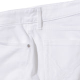 更に特徴的なのは、白いデニム生地の上から、もう一度白いガン料で染めているため、一般的な白いデニムと比較し、透けにくい仕上がりとなっています。