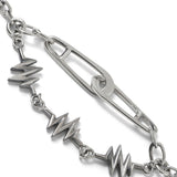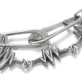 ノイズジュエルのアイコンであるグラフィックチャームとセーフティピンデザインのチェーンを組み合わせたデザイン。