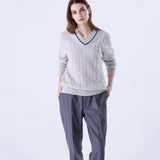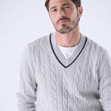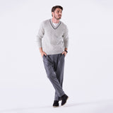 高品質と名高い産地であるオーストラリア産メリノ種のエクストラファインラムズウール(18.5〜19μm)を厳選して使用しています。毛質はとても繊細で、軽く柔らかな風合いで保温性・保湿性に優れています。この特性を活かしケーブル柄で編み立て優しい凹凸感を表現しました。ネックの深さはシャツ・Tシャツどちらも合わせやすい深さに設定。様々なシーンに馴染む汎用性の高いアイテムです。