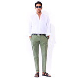 なめらかな光沢とほどよいハリ感を備え、ウォッシュ加工によって“さらりとした風合い”と自然なこなれ感を加え、深みのある表情に仕上げています。 ストレッチ性のあるコットンサテン生地は、きちんと感はそのままに、快適な穿き心地を実現。