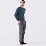 定番のクルーネックニットは、ネックラインは柔らかくかつシャープに首元に添い、カシミヤのソフトな手触りとスムース独自の程よい厚みがシルエットに丸みと立体感を出し、リュクスでモダンなカジュアルスタイルを生み出します。