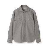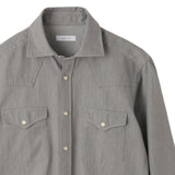 カーブしたヨークや両胸のフラップポケット、ドットボタンなどが特徴的なウェスタンシャツに新色グレーが登場。