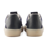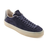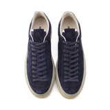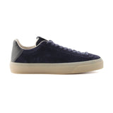 ネイビー1色で構成したスエード×表革の構成が、静かな存在感と都会的なムードを纏い、ミニマルでありながら確かな色の気を放ちます。デザインの着想源は、1930年代のレトロなアイススケートのシューレース。