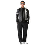 F0 RACING シングルライダース カウレザー ブラック×ホワイト