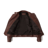 新色ブラウン登場。パッティングデザインのレザーセミダブルライダース。