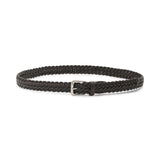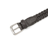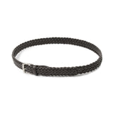まず手に取った瞬間、その質感に驚かされます。メッシュの帯(ベルト本体)部分は、熟練の職人がしなやかなカーフレザーを一本一本丁寧に手編みしたもの。繊維密度の高い上質素材を、革ヒモの断面まで美しく磨き、丸みを持たせて編み上げているから、触れた瞬間からその素晴らしさがダイレクトに伝わってきます。