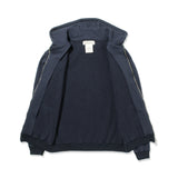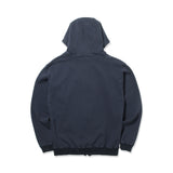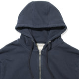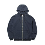 オリジナルで形から作成したzipパーカです。独特の滑りと光沢感が何とも美しい裏毛素材を使用しています。密度感のある表面のクリアさと弾力のあるストレッチ性、裏側のループにも双糸を使用し、ふっくら柔らかな質感にこだわって作成しました。加工もあえてワンウォッシュ程度にとどめてキレイ目なスウェットを目指しました。