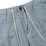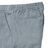 そこでARCODIOにお願いしてつくったのがこのショートパンツです。生地にはフランス産原料のリネンを使い、あえて少し厚みをもたせています。ショーツは軽すぎると頼りなく見えることがありますが、この生地は適度な厚みがあるので大人っぽく見えるんですよ。しかも糸の段階で染めてから織り上げているため、色合いに奥行きがあり、ネップの表情も上品。さらに製品洗いをかけているので、最初から長年はき込んだような柔らかさがあります。