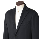 布帛のように織感に見え、実はニットおちう独特の軽さと伸縮性が非常に魅力的です。 ストレスフリーな着心地ながら、ナポリ仕立ての構築的な肩回りや手仕事のボタンホールがドレススタイルの幅を広げてくれ、普段のお仕事はもちろん、出張などでも大活躍する1着です。