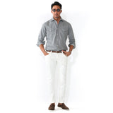 コーディネイトは難しく考えず、白のコットンパンツ代わりと考えると、意外と合わせやすいと思います。ネイビージャケットやネイビーのニットに合わせて、足元は白いスニーカーやローファー。コットンパンツだと少しかしこまって見えるところを、ジーンズにすることで、程よくカジュアルで軽快な印象になります。その日の気分や、自分をどう見せたいかで、コットンパンツとジーンズを使い分けるのが、大人のおしゃれだと思います。 ジャケットにも似合う大人のヴィンテージデニムを、YCHAIの技術と感性でかたちにした一本。長く使える細身のホワイトジーンズを探している人に、自信をもっておすすめします!
