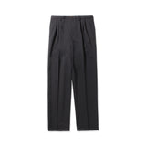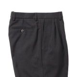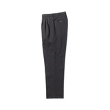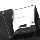 今回干場がセレクトしたモデルはMod.1981。1981年に生産された3プリーツデザインがベースで、美しさと大人らしさを兼ね備えた立体的なワイドテーパーシルエットを生み出しています。素材にはこちらもデッドストックの希少なポリエステル素材のブラックを使用。パンツの3Pテーパーフォルムに息吹を吹き込むハリ感と生地の膨らみが生み出すリッチ感が特徴。