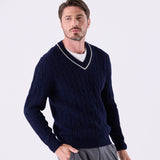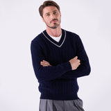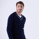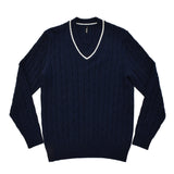 tradi ラムズウールケーブル編みプルオーバー ネイビー